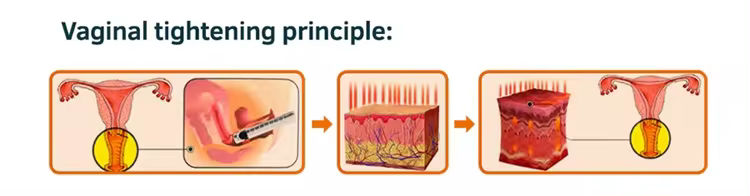 لیزر سفت کننده واژن استفاده از لیزر استاندارد طلایی 10600 نانومتری جذب آب است که با استفاده از فناوری شبکه سه بعدی و انتشار دایره ای 360 درجه ترکیبی کامل از فناوری، برای تولید 50 تا 70 درجه سانتیگراد در عمق کنترل شده مخاط واژن، تحریک لایه لایه فیبروبلاست های پروپریا و میومتروم و فیبرهای کلاژن آسیب دیده، الیاف الاستیک، مانند بازسازی، به طوری که دیواره واژن ضخیم شود و واژن سفت شود به طوری که سفتی، افزایش حساسیت، واژن مانند همیشه سفت شود. لیزر سفت کننده واژن باعث سوختگی پوست نمی شود. تا دمای بالا، هر کدام قادر به گرمای همگن هستند و بر روی سازمان مخاطی با ضخامت چند صد نانومتر عمل می کنند.