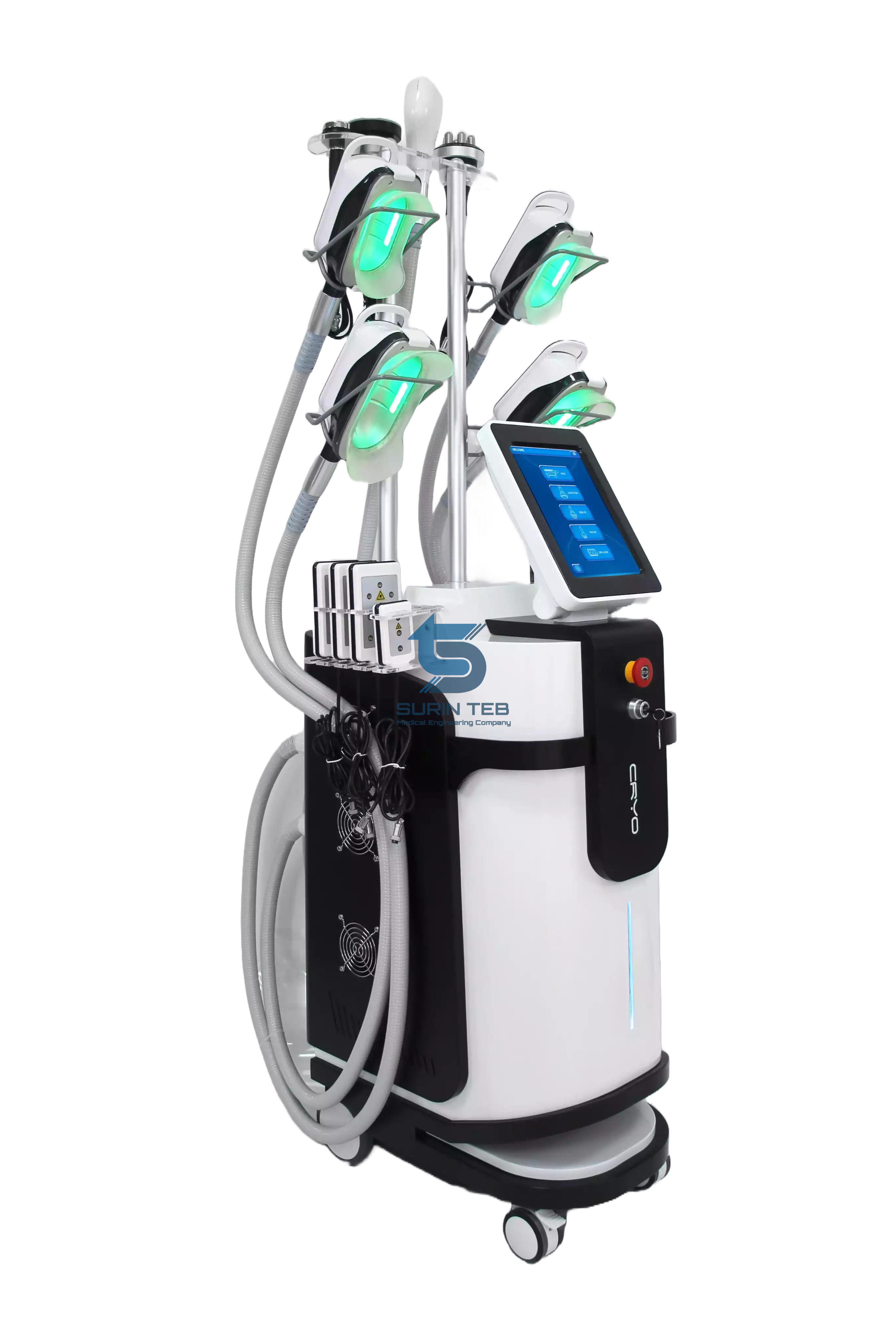 نسل جدید کرایولیپولیز ها 5 هندپیس کرایو 1 هندپیس Cavitation (۴۰ کیلوهرتزی) هندپیس آراف صورت هندپیس آراف بدن سیستم خنک کنندگی فوق العاده قوی Coolsculpting دابل چیلر برای خنک کنندگی حداکثری و کاهش استهلاک