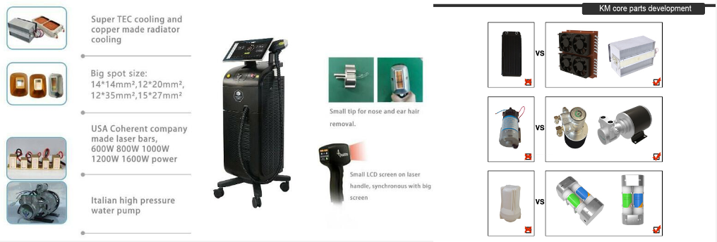 دستگاه لیزر سوپرانو تیتانیوم از برند معتبر KM دارای مجوز رسمی از سازمان تجهیزات پزشکی ایران(IMED) دارای لیزر بار قدرتمند کوهرنت آمریکا دارای دو فیلتر آب پمپ آب ایتالیایی پاور های TDK ژاپنی دارای تایید های پزشکی FDA و TUV